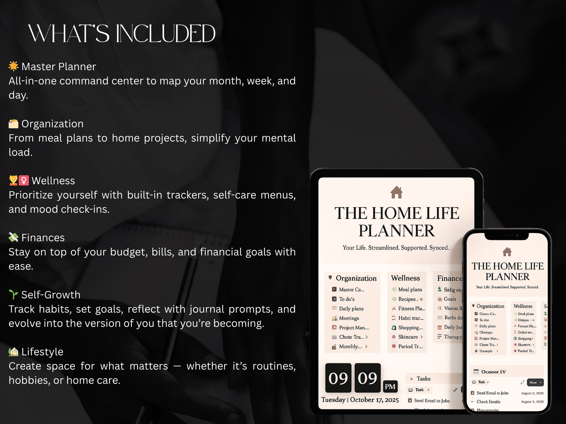 Whether you're running a household, running a business (or both), this intentionally designed Notion planner brings clarity, calm, and structure into your everyday life — without the burnout.